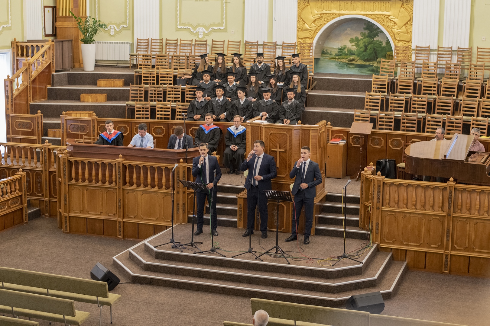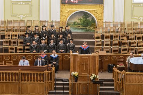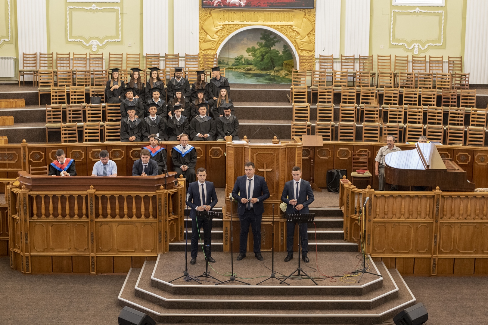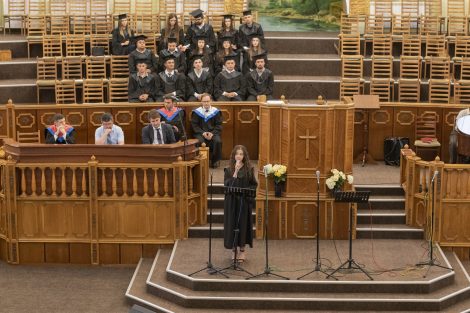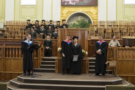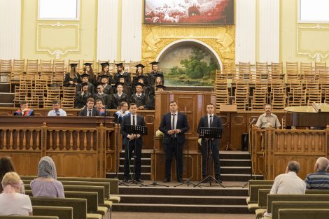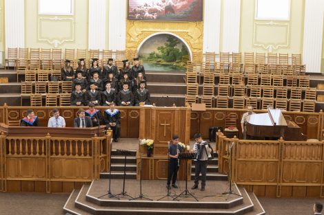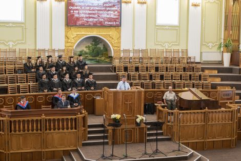 Это было особенное благословенное служение, ведущим которого был брат Алексей Ерхан. В программе служения принимали участие выпускники школы «Начало», музыкальная группа «Сион» и братья роми. Словом поделились брат Александр Мирон, проповедник, преподаватель и академический декан школы «Начало», и брат Сергей Германов, пастор и преподаватель в христианском университете “Divitia Gratia”, а также вице-председатель союза ЕХБ Молдовы. Братья прочитали и напомнили о том, что мы должны иметь дух Христов, проявляя прежде всего любовь, а также кротость, смирение и святость, без которой никто не увидит Бога. Ибо Господь говорит: «Будьте святы, ибо Я свят» (1-е Петра 1:16). Братья также призвали выпускников использовать полученные знания для служения Богу и людям, и полностью посвятить себя Господу.