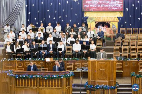 В этот день оркестр исполнил рождественские произведения, которыми поздравил церковь и всех гостей – не словами, а игрой на музыкальных инструментах. Также в программе приняли участие группа «Небо», квартет, чтецы стихов. Вся программа напоминала нам о рождении Мессии, о том что Христос родился, чтоб всем нам показать свою любовь, избавить от всех грехов и подарить нам вечную жизнь.
