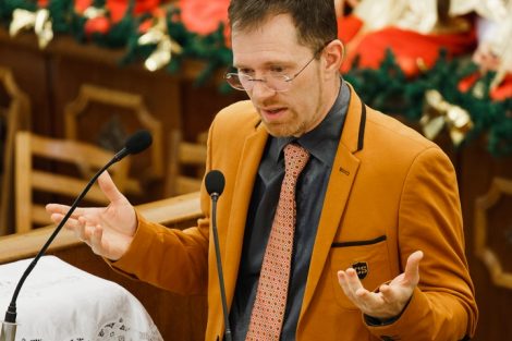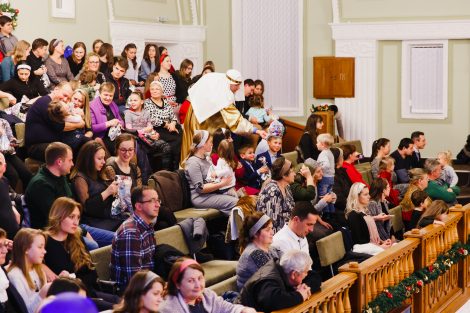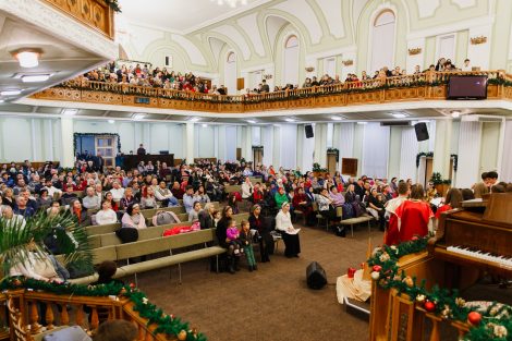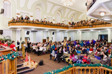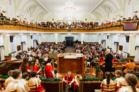 С проповедью к членам церкви и её гостям обратился Коновальчук Павел. Он напомнил о том, что на самом деле значит праздник Рождества, периодически вступая в диалог с детьми, находящимися в зале. В завершение служения, по традиции, все присутствующие дети получили сладкие подарки.